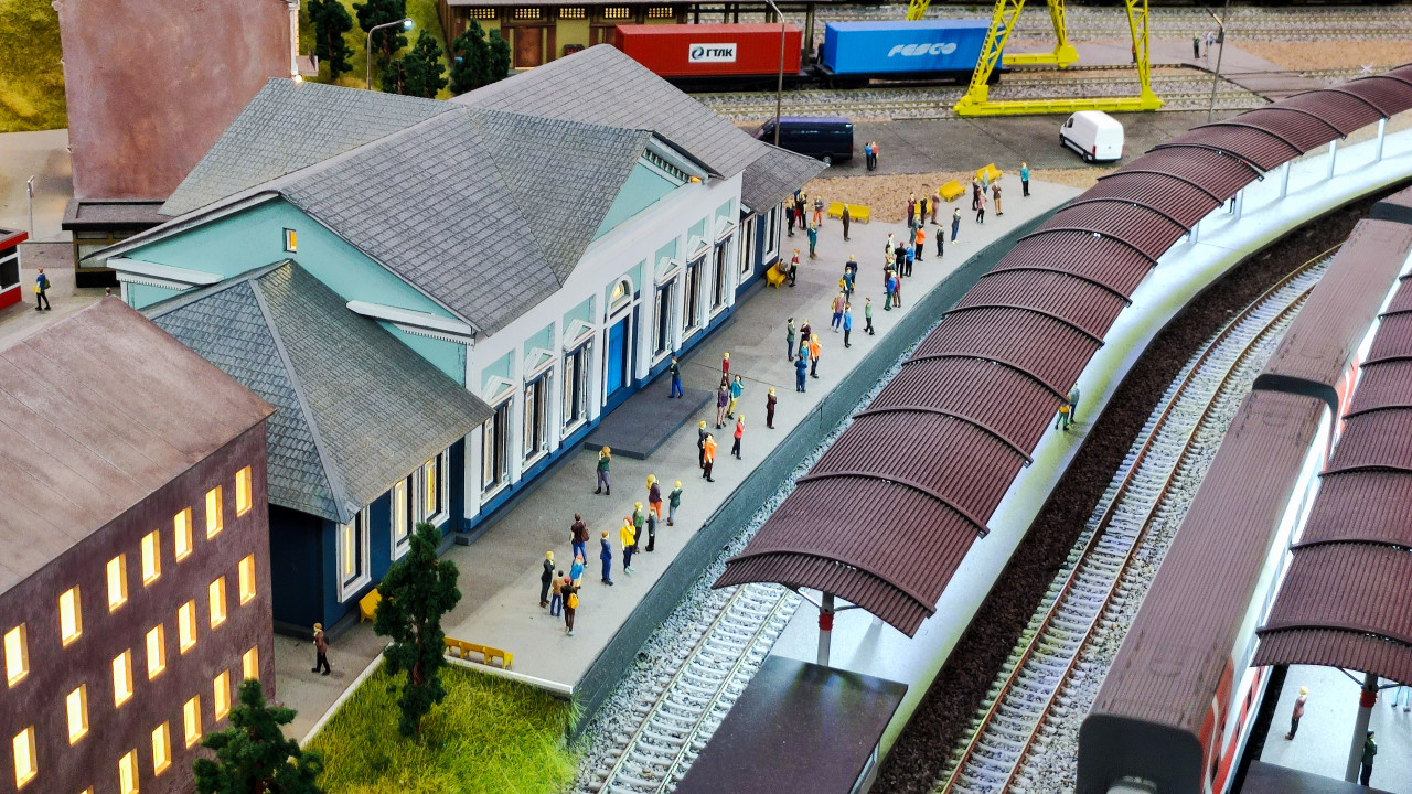 вднх москва выставка россия экспозиция музей выставочный павильон выставочный объект демонстрационный макет модель инженерия железная дорога железнодорожный транспорт станция вокзал пассажирская платформа навес платформы поезд вагоны рельсы пассажиры транспортная инфраструктура логистика контейнерная площадка контейнерный терминал грузовые контейнеры козловой кран грузовой двор FESCO макет инфраструктурный макет масштабная модель выставка ВДНХ павильон 15 Россия в движении транспортная система перевозки транспорт РоссииПохожие фотографии