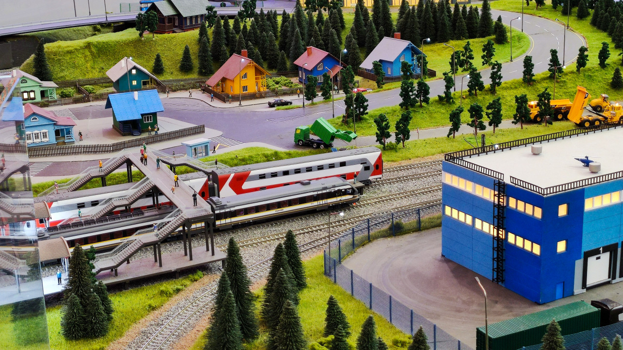 Лесной склон и железнодорожная линия в миниатюре в павильоне «АТОМ»