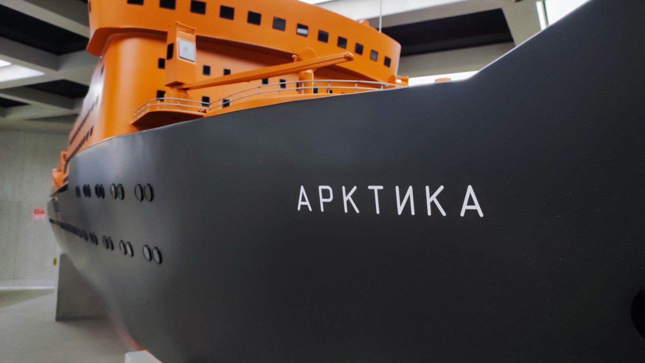 Общий вид макета атомного ледокола «Ленин» в зале «Время первых»