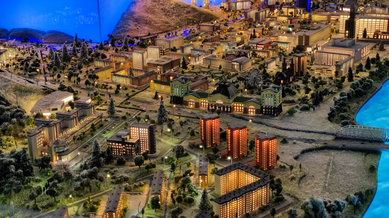 Квартал с храмом на двухуровневом макете Москвы