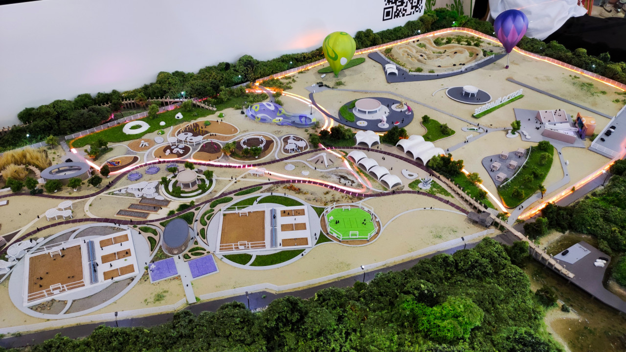 Общий вид макета досмотровой инфраструктуры с несколькими служебными зданиями