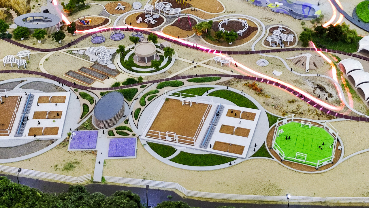 Строительные работы у железнодорожных путей на макете транспортной системы