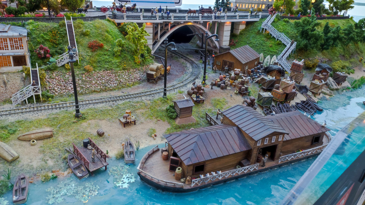 Полный вид вагона Deutsche Reichsbahn с урановыми бочками в экспозиции павильона «АТОМ»