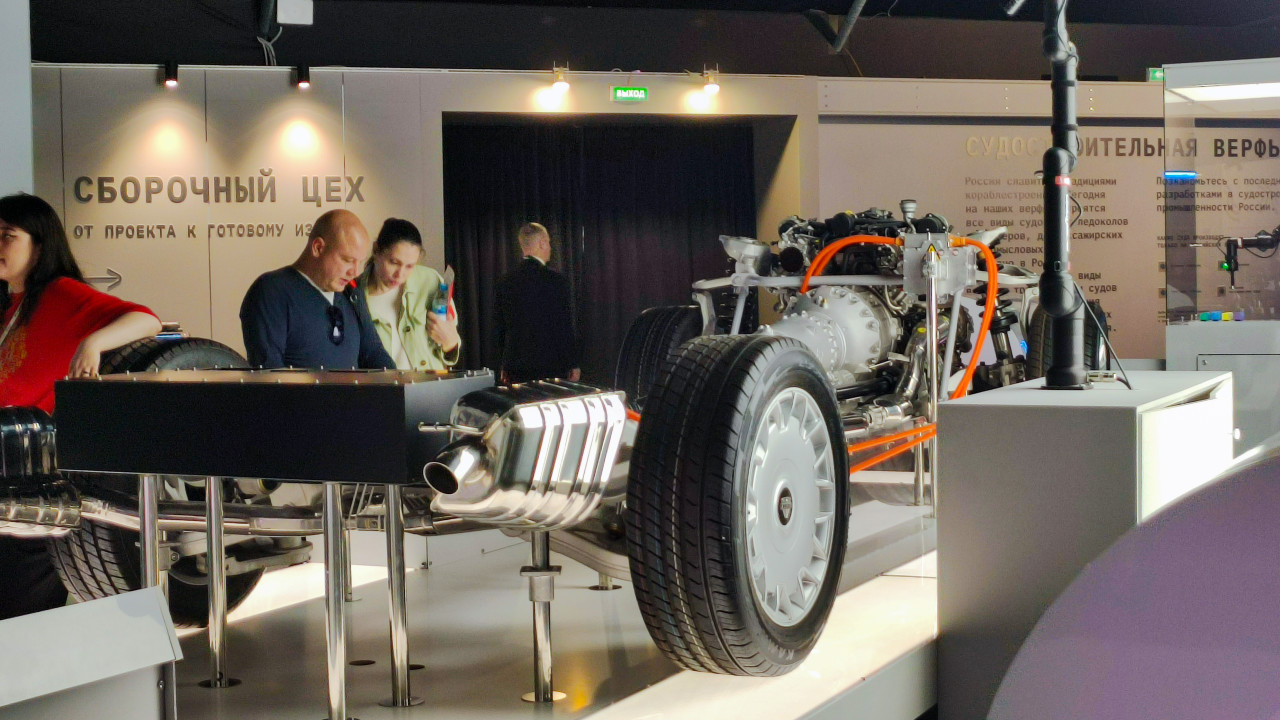 Экспозиция о транспорте будущего с электросамокатами и макетом автомобиля