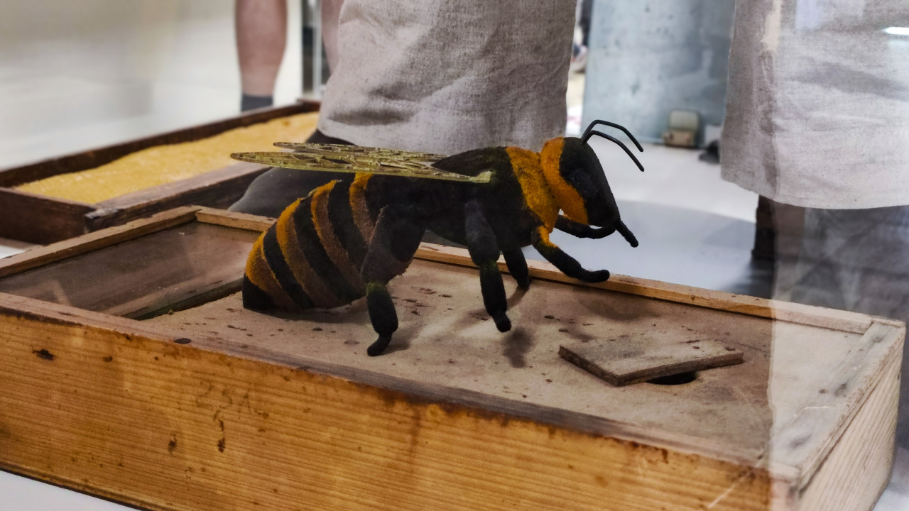 Посетители участвуют в интерактивном эксперименте со слитком на выставке «Россия»