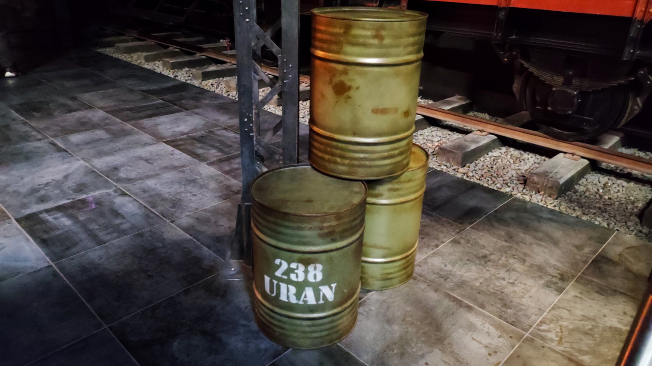 Световая конструкция с металлическими трубами в экспозиции павильона «АТОМ»