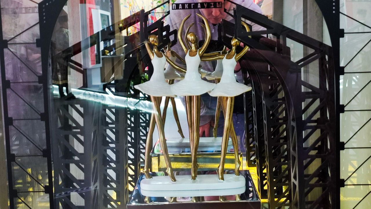 Экспозиция Ростовской области с центральной аркой и красной фигурой коня в павильоне №75 ВДНХ