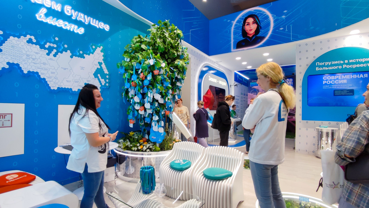 выставка экспозиция выставочный стенд вднх москва выставка россия государственные услуги государственные органы росреестр цифровые сервисы фирменный стиль логотип общественное пространство форум официальный проектПохожие фотографии