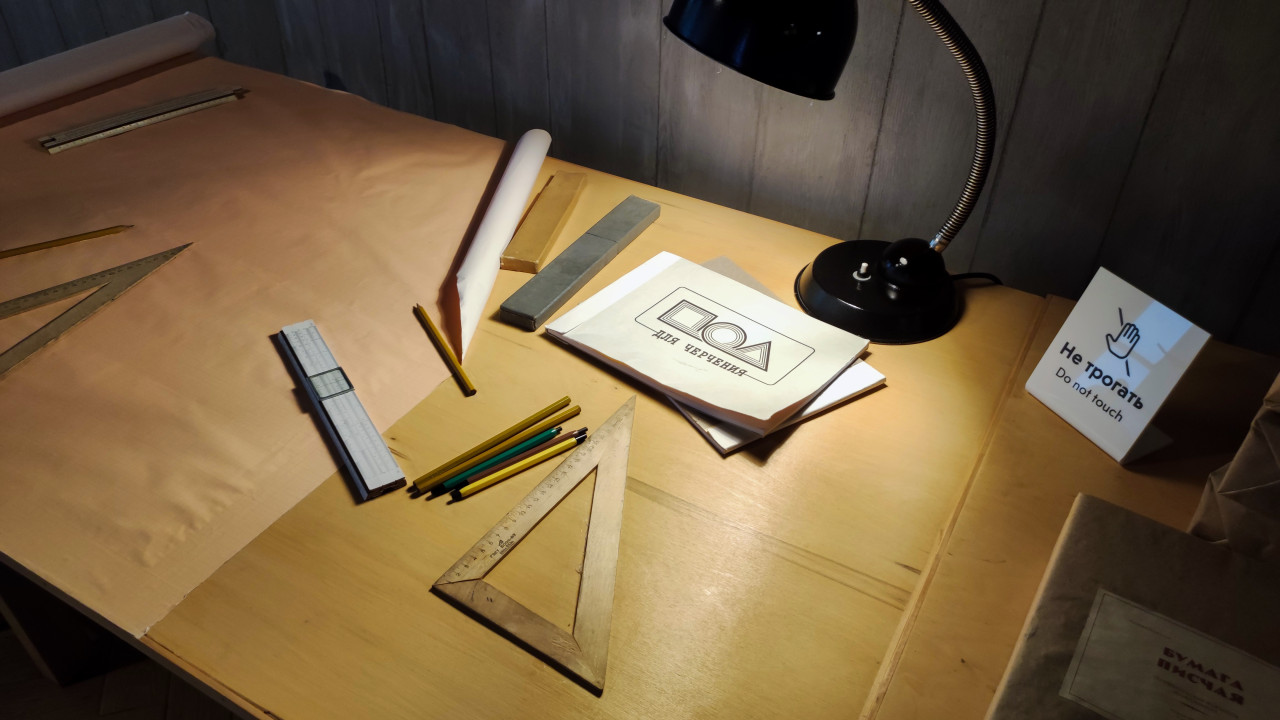 Рабочее место инженера с техническими схемами в павильоне «АТОМ»