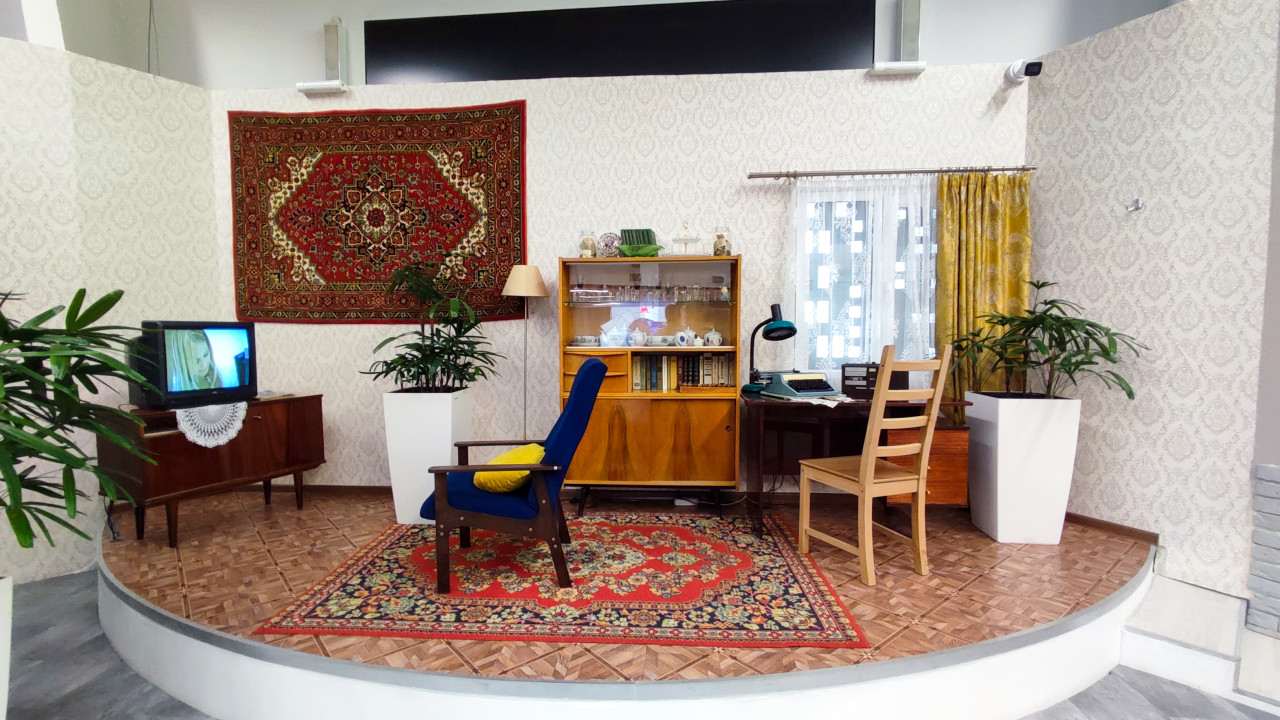 Табурет и ретротелевизор в советской интерьерной зоне павильона «АТОМ»