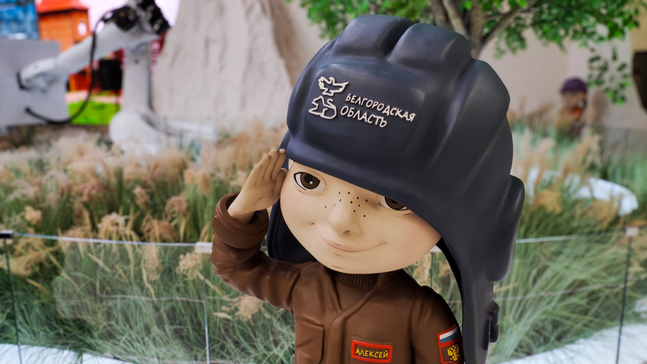 Инсталляция Росреестра с фигурой белого медведя и символикой сервиса «Умный кадастр»