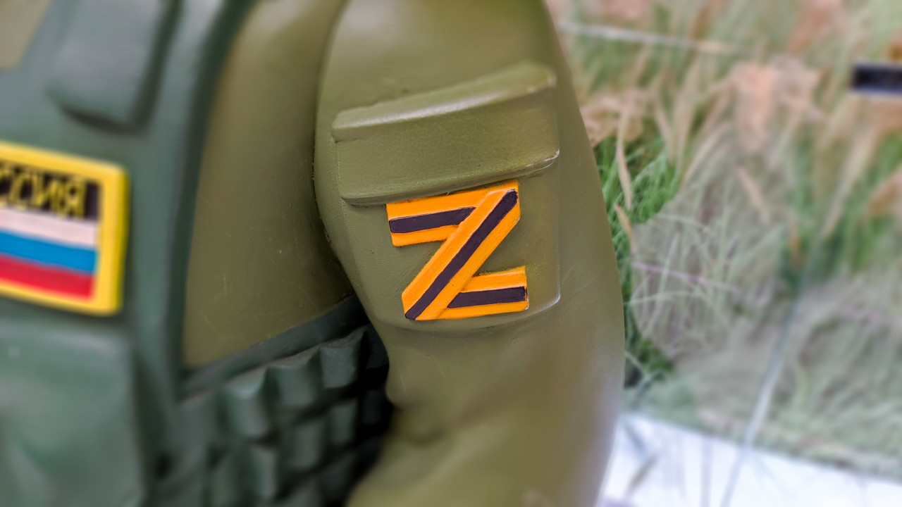 Скульптура нахимовца на фоне ледяного корабля и архитектуры Петербурга