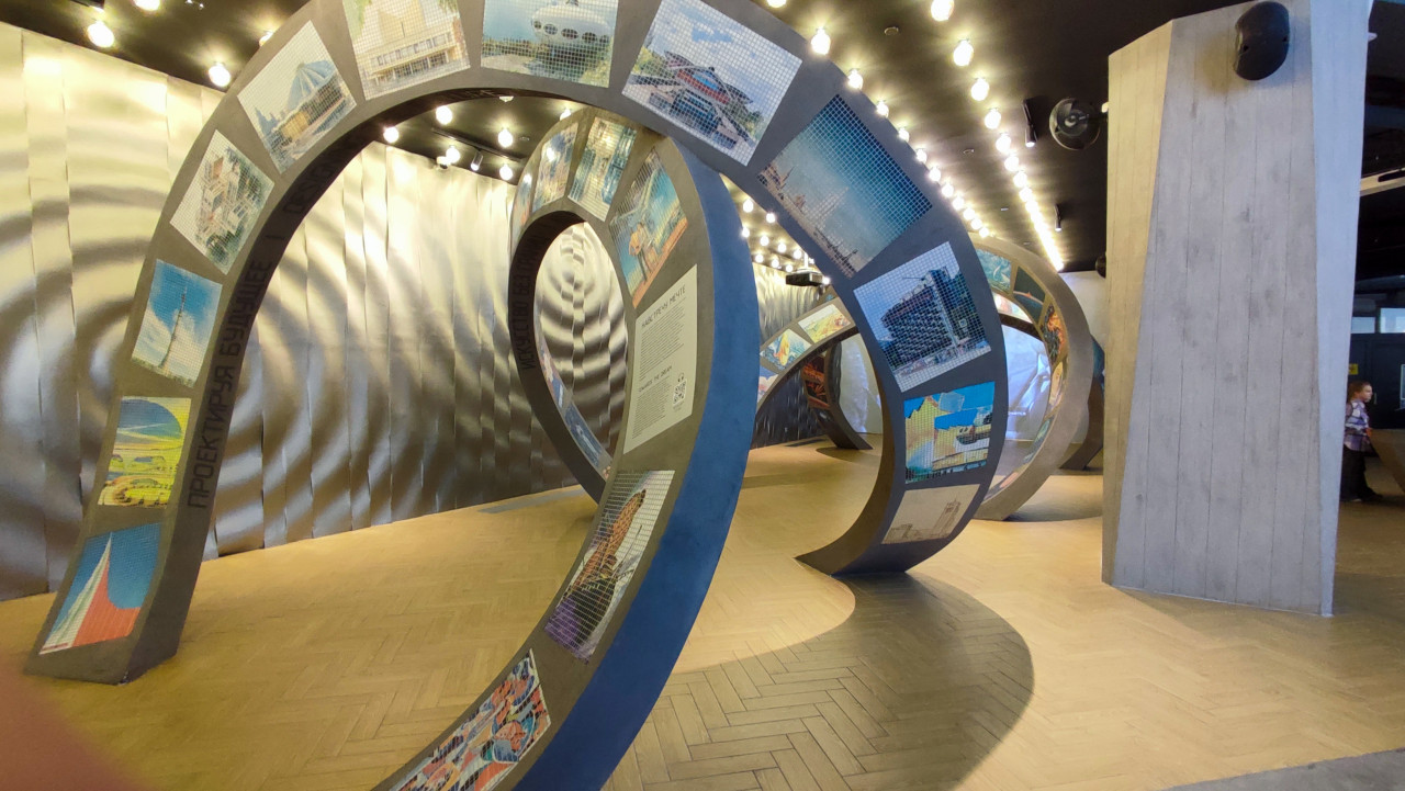 Инсталляция «Транспорт России» у входа в павильон №15 «Радиоэлектроника и связь» на ВДНХ