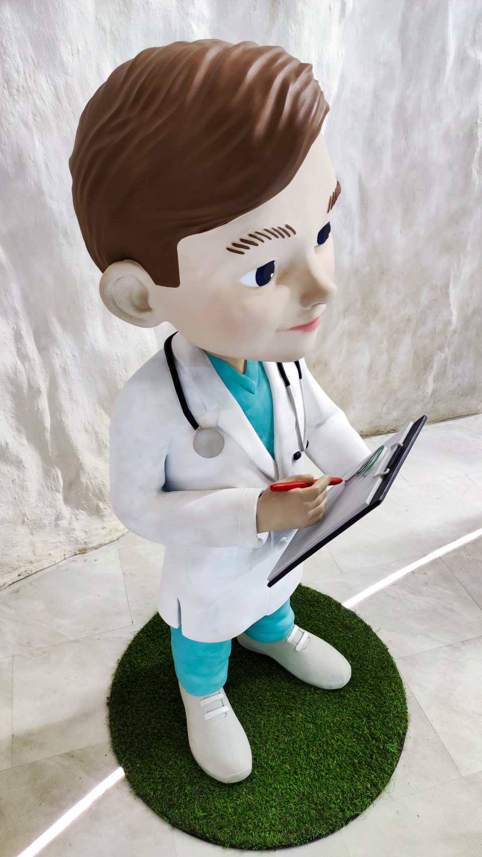 Фигуры медика и девочки в форме на стенде Белгородской области
