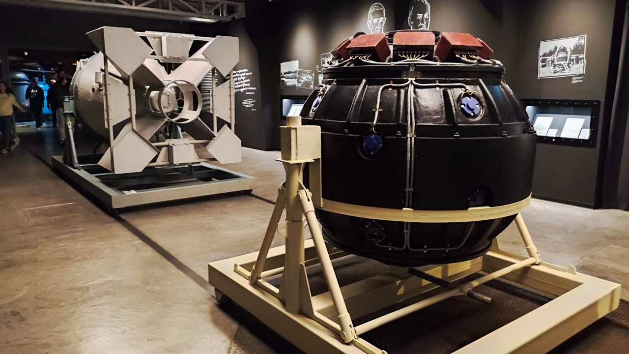 Хвостовая часть макета РДС-1 в экспозиции павильона «Атом»