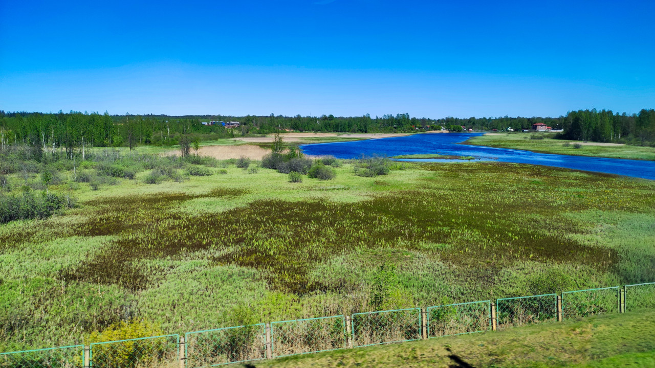 река водоём прибрежная зона заболоченная местность водный пейзаж лесной массив берёзы кустарники травяной покров береговая линия речная экосистема природная среда экология весенний сезон сельская местностьПохожие фотографии