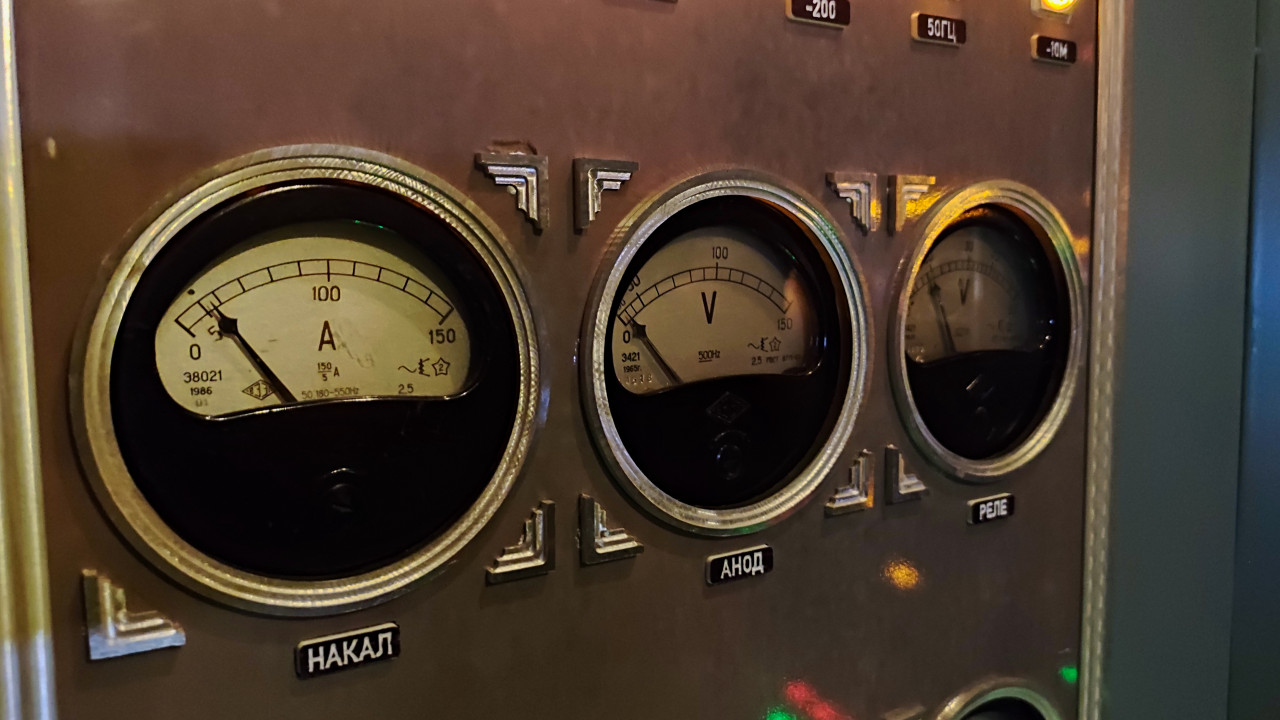 Пультовый зал с ретро-панелями управления в экспозиции павильона «АТОМ»
