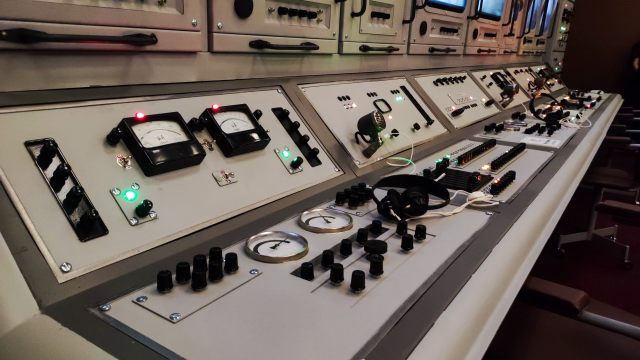 Панель управления с аналоговыми приборами в павильоне «АТОМ»