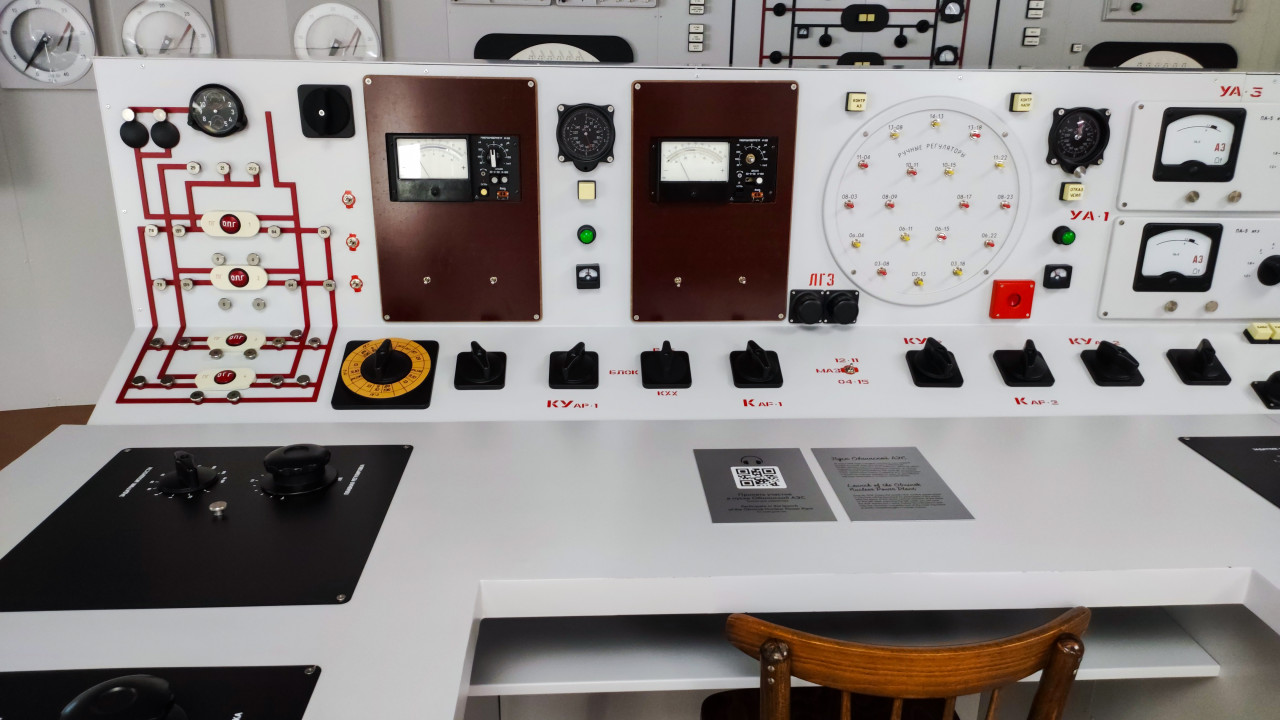 Панель управления и табличка «Не трогать» в экспозиции павильона «АТОМ»