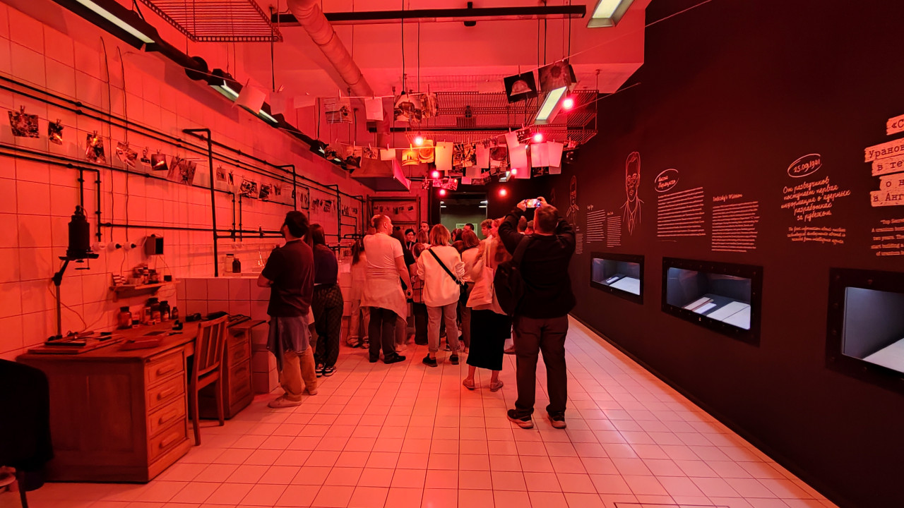 Развешенные фотоснимки в фотолаборатории павильона «АТОМ»