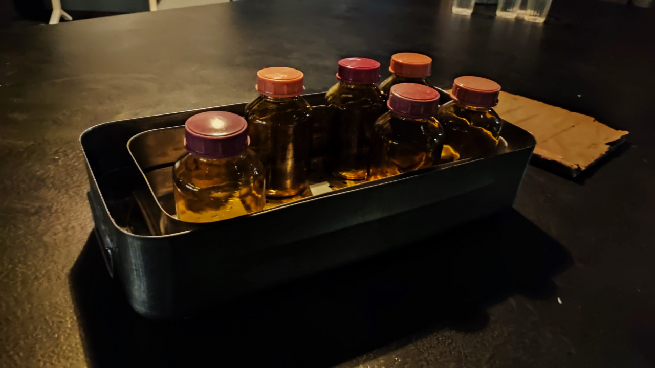 Лабораторные флаконы и издание 1924 года в исторической зоне павильона «АТОМ»
