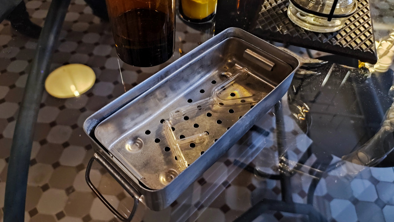 Полка с пробирками и лабораторной посудой в экспозиции «Советский атомный проект»