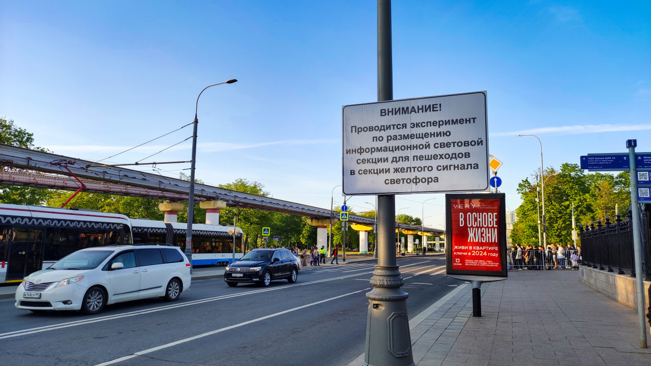 москва дорожный знак эксперимент светофор желтый сигнал предупреждение пешеходы проспект мира транспорт автомобили трамвай монорельс городская инфраструктура безопасность движения дорожное движение тротуар улица табличка информационный знак городской транспорт эксперимент дорожного движения пассажиры движение транспорта россия уличная среда транспортная система опоры монорельса трамвайные путиПохожие фотографии