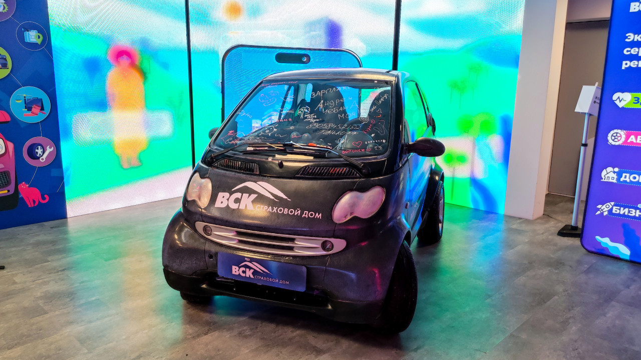 Ржавый ретро-автомобиль с современным двигателем BMW в музейной экспозиции