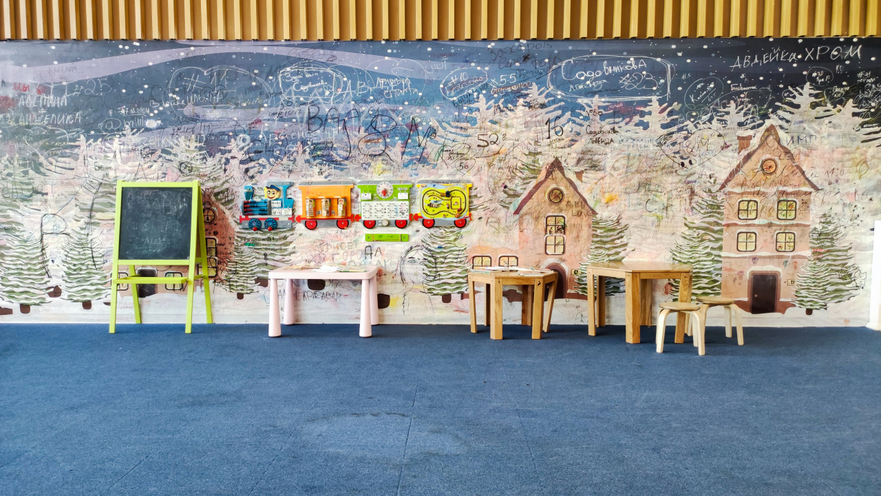 Вход в терминал 1А аэропорта Казани с экранами и указателями