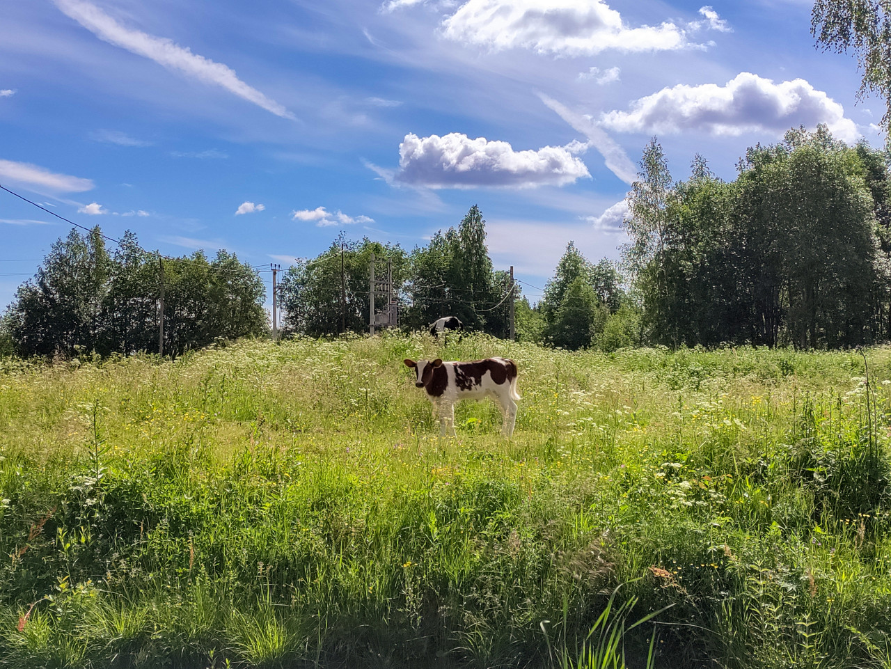 природа сельское хозяйство животноводство крупный рогатый скот корова телёнок пастбище луг высокая трава лето сельская местность деревня разнотравье полевые цветы зелёная трава лес деревья берёзовая роща голубое небо облачность кучевые облака летний день выпас скота фермерство сельская инфраструктура линия электропередачи ЛЭП провода опоры горизонт пейзаж сельский ландшафтПохожие фотографии