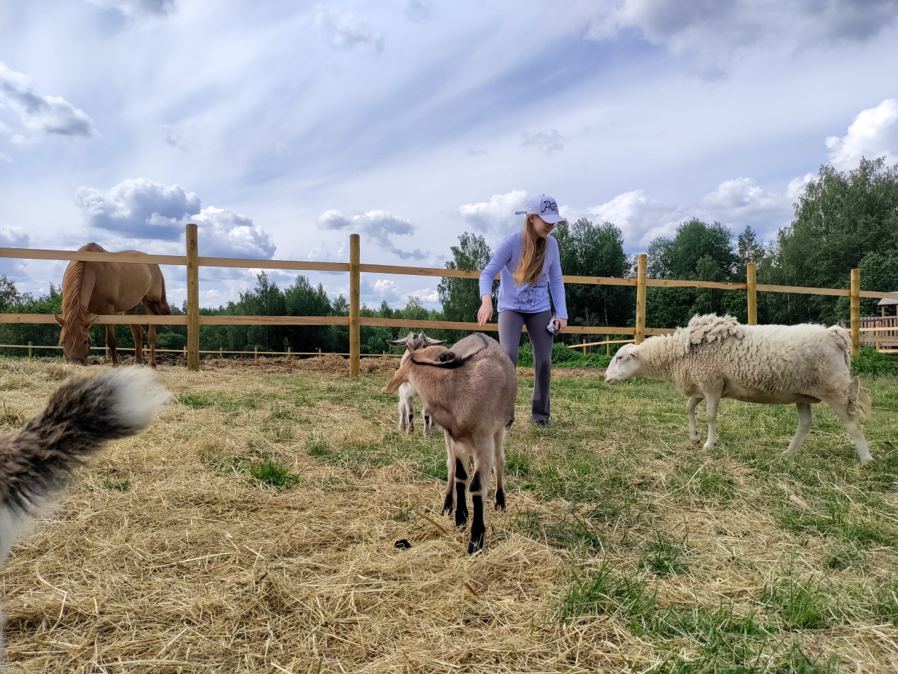 животные домашние животные ферма сельское хозяйство контактный зоопарк фермерский туризм коза козлёнок пастбище загон деревянный забор сено трава лето люди девушка сельский отдых козы домашняя коза козленок овца овцеводство лошадь кошка хвост кошки общение с животными уход за животными природа лес облака небо летний день дневной свет сельская местностьПохожие фотографии