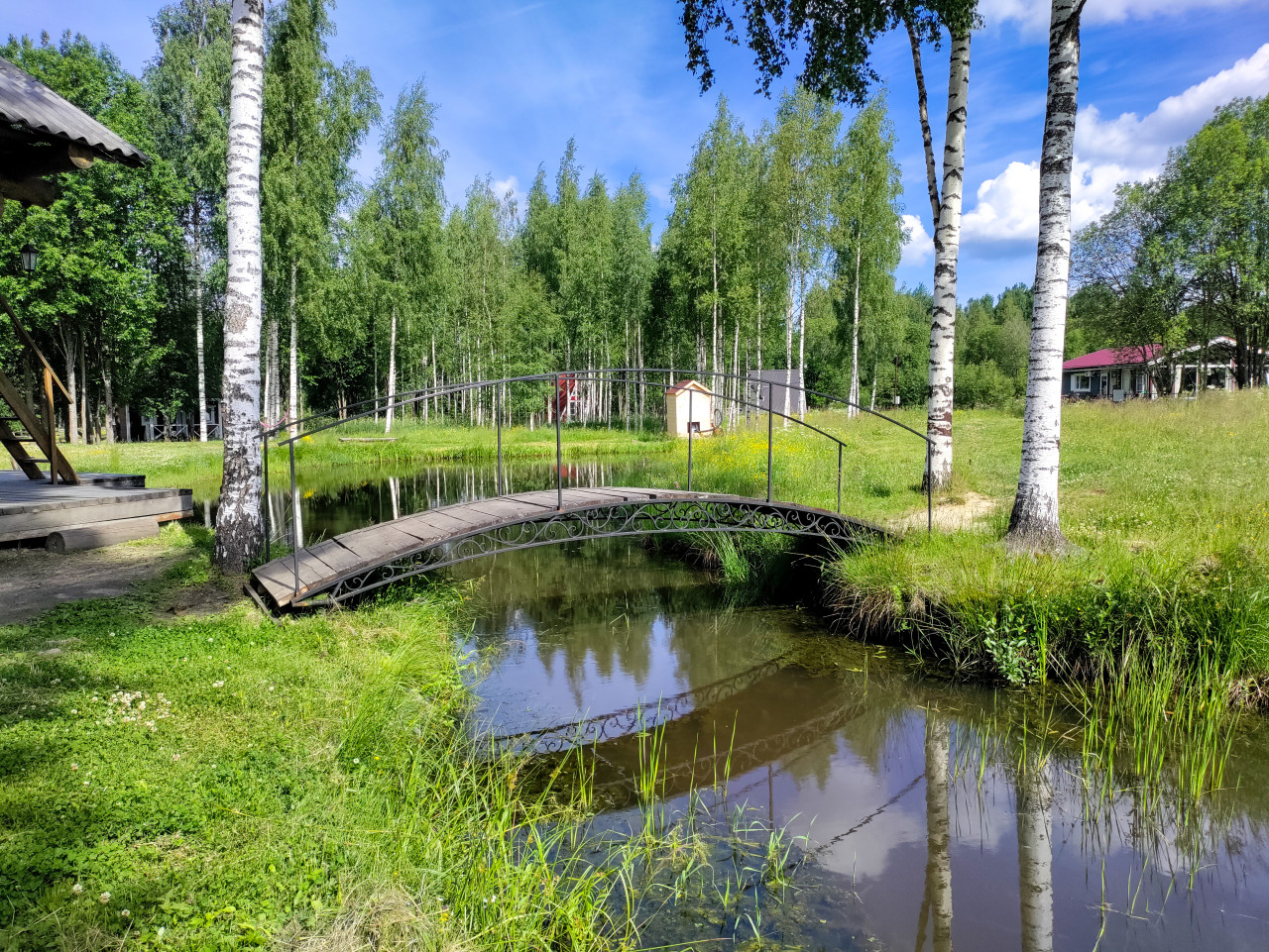 деревня село поселок сельская местность сельский пейзаж загород загородная местность пригород загородная жизнь жизнь за городом провинция сельская жизнь поселение природа загородный участок ландшафт пруд ручей вода отражение мостик деревянный мост арочный мост перила благоустройство березы березовая роща луг прибрежная трава камыш терраса деревянный настил навес турбаза база отдыха дача дом с красной крышей лето голубое небо кучевые облака спокойный пейзаж экотуризм прогулочная зонаПохожие фотографии