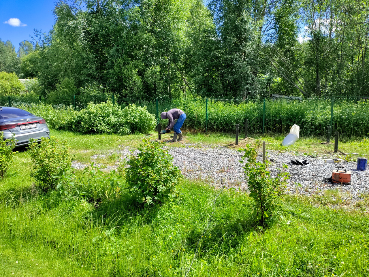 строительство свайный фундамент винтовые сваи установка свай монтаж стройплощадка рабочие грунт щебень разметка инструмент техника безопасности загородный участок лето фундамент свайное поле металлические сваи монтаж фундамента щебеночная подсыпка подготовка площадки рабочий строитель ручной труд кабель дача частное строительство зеленый забор трава кусты деревья июнь 2024 автомобиль организация работПохожие фотографии
