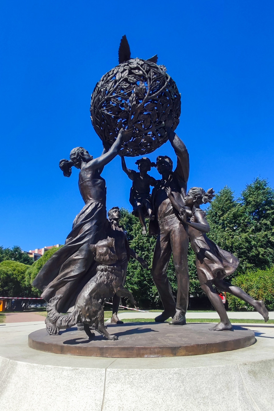 санкт петербург парк 300 летия санкт петербурга приморский район парк скульптура памятник монумент бронзовая скульптура арт объект общественное пространство композиция «семья — залог мира» семья земной шар голуби год семьи Санкт Петербург парк 300 летия Приморский район композиция Семья залог мира бронза отец и ребёнок дети собака ажурный шар ветви листья символ мира постамент мощение деревья общественное искусство достопримечательность Юлия Заренкова Вячеслав Заренков открытие 20 июня 2024 Год семьи городской туризм диагональный ракурсПохожие фотографии