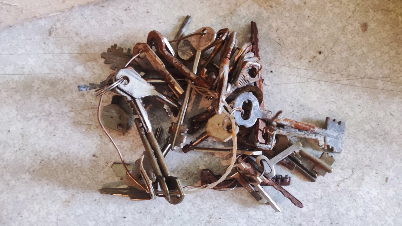 предметы ключи связка ключей металл кольцо для ключей проволока бирка ржавчина коррозия износ пыль железо ключ кольца бирки замок доступ безопасность контроль доступа хозяйственные ключи служебные помещения склад кладовая инвентаризация утерянные вещи брошенные предметы окисление грязный пол мусор заброшенное зданиеПохожие фотографии
