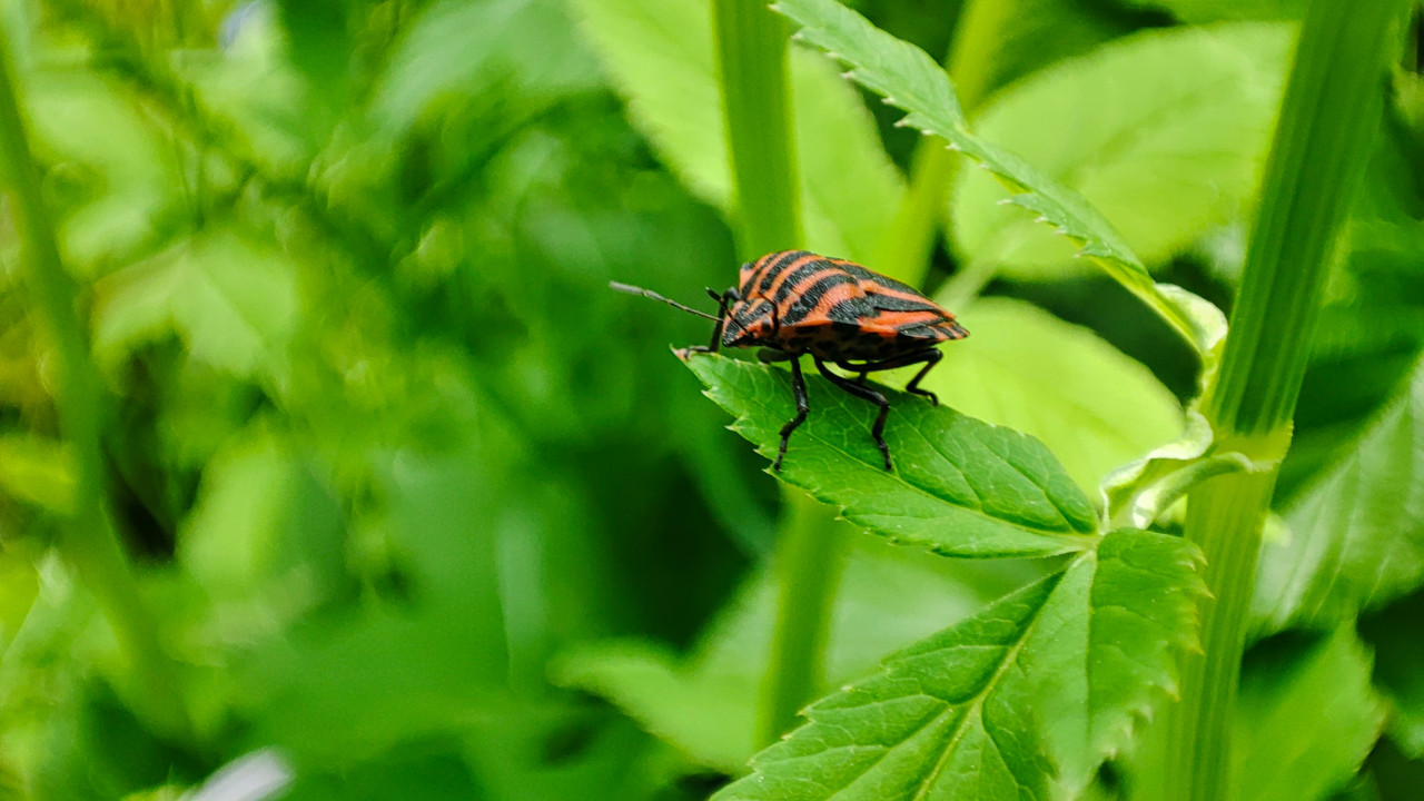 природа насекомые животный мир растения дикая природа биология энтомология биоразнообразие макросъёмка крупный план клоп полосатик щитник полосатый полужесткокрылые красно чёрные полосы полосатая окраска предупреждающая окраска насекомое на листе зелёные листья стебель луговые травы зонтичные растения лето тёплый сезон экология селективный фокус размытый фон микромир природный камуфляж наблюдение за природой насекомые лугаПохожие фотографии