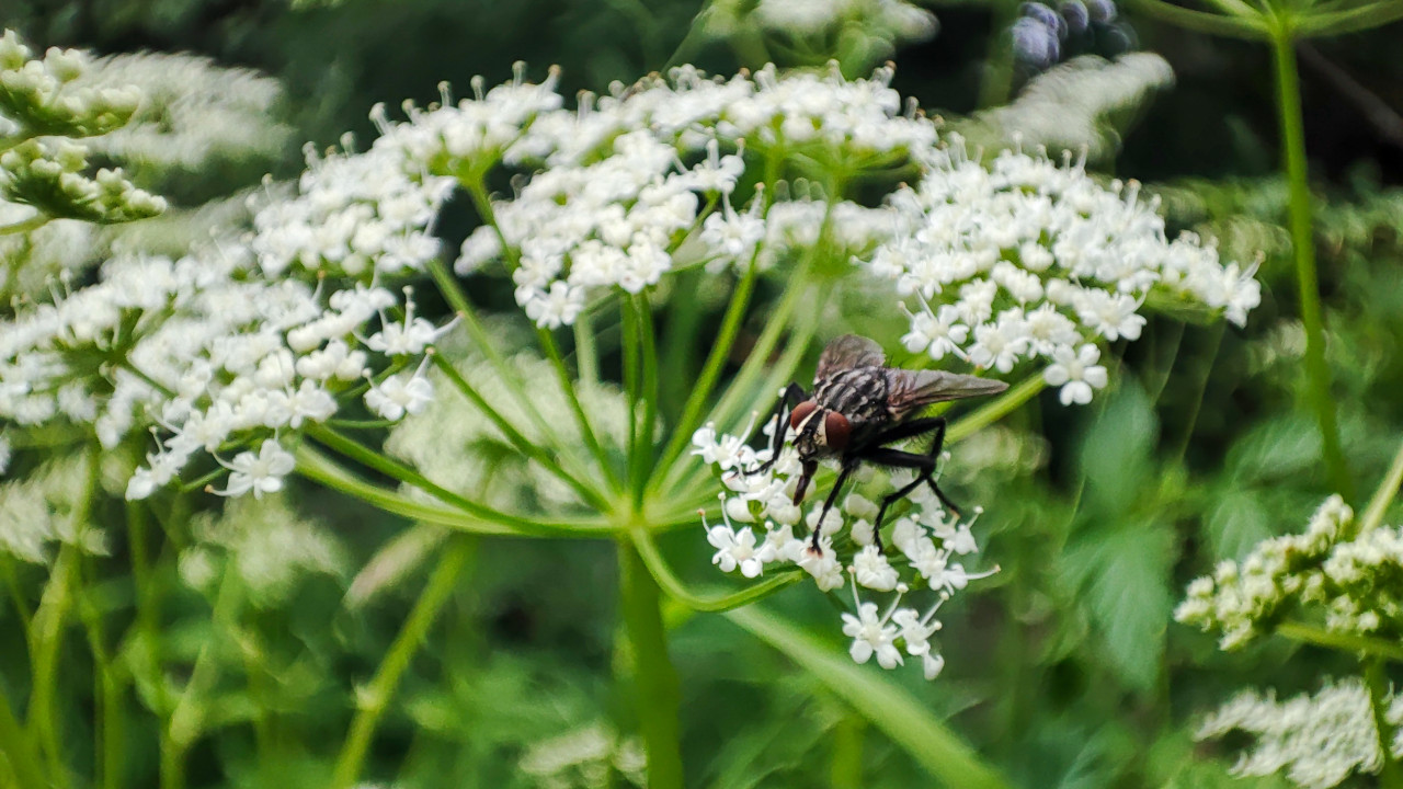 природа насекомые животный мир растения дикая природа биология энтомология биоразнообразие луг белые цветы зонтичное растение соцветие стебли макросъёмка крупный план боке малая глубина резкости муха двукрылые опылитель крылья ноги насекомого глаза питание на цветках нектар экология лето дневная съёмка полевые растенияПохожие фотографии
