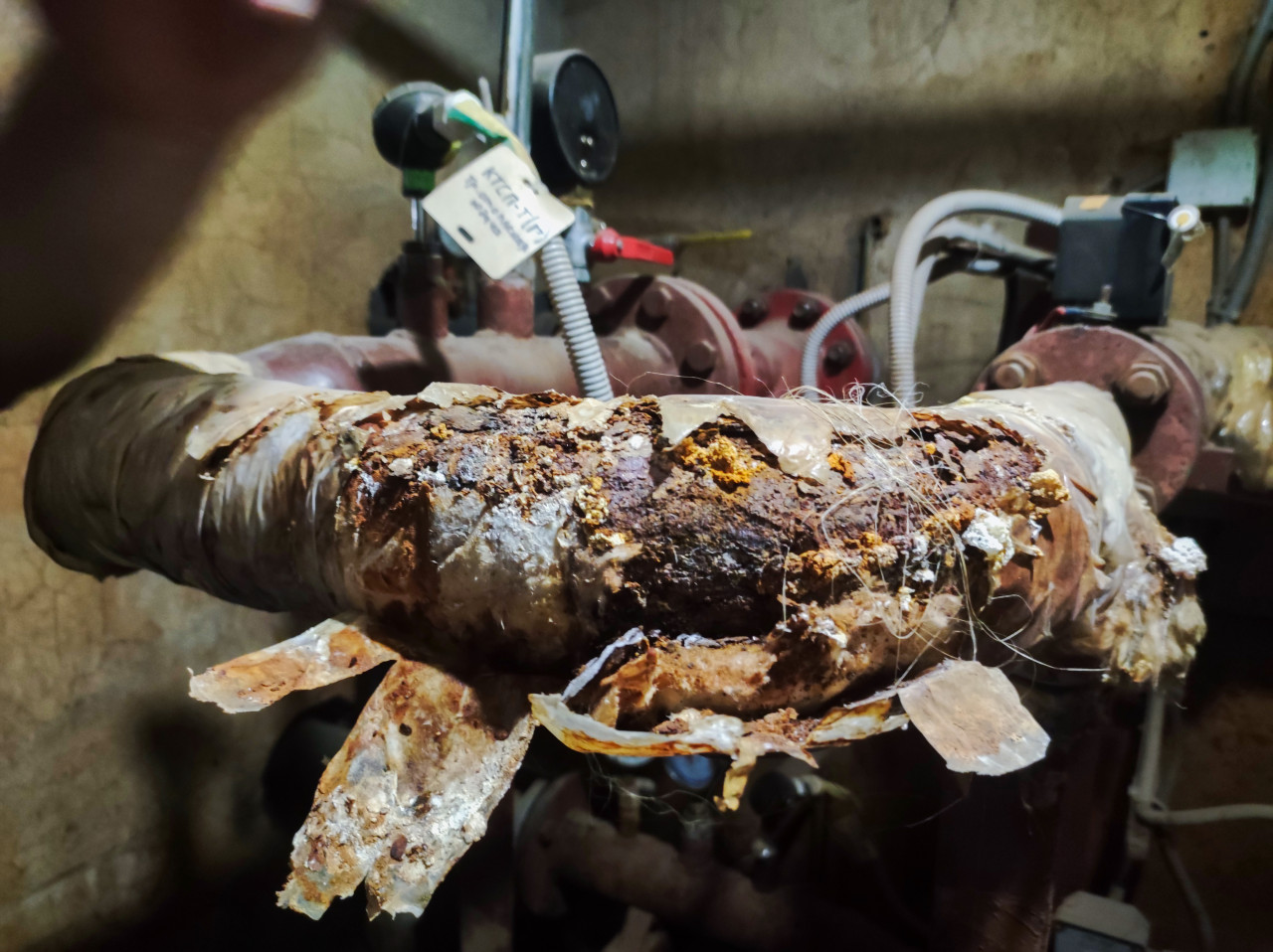 инфраструктура инженерные сети инженерные коммуникации коммунальные службы жкх макросъёмка крупный план текстура коррозия ржавчина металл труба трубопровод теплоизоляция повреждённая изоляция обмотка износ дефект аварийное состояние техническое помещение подвал отопление теплотехника арматура фланец проводка гофра диагностика обследование ремонт коммунальное хозяйство ЖКХ промышленная фотографияПохожие фотографии