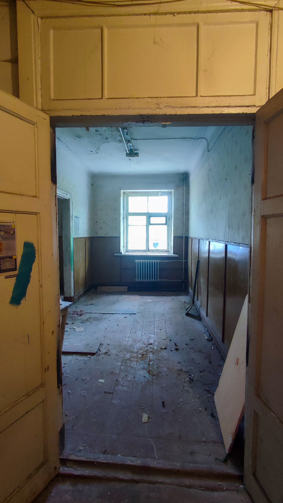 интерьер заброшенное здание старый дом ветхость аварийное состояние износ строительный мусор коридор пустующее помещение старые двери двустворчатая дверь дверной проём окно радиатор батарея отопления деревянный пол стеновые панели обои обшивка проводка потолок люминесцентный светильник демонтаж пыль разруха административное помещение ремонт реконструкция дневной свет перспектива симметрия старая отделкаПохожие фотографии