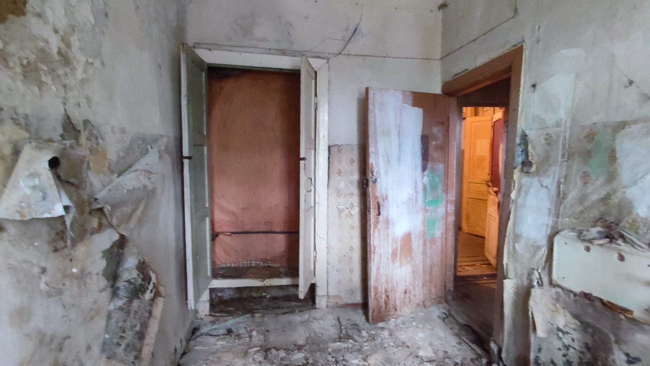 интерьер заброшенное здание старый дом ветхость аварийное состояние износ строительный мусор помещение старое учреждение ремонт демонтаж реконструкция стены штукатурка облупившаяся краска трещины пятна дверной проём дверь снятое дверное полотно коридор ниша в стене створки пыль грязь разрушение обследование здания техническое состояние пустая комната урбекс документальная фотографияПохожие фотографии