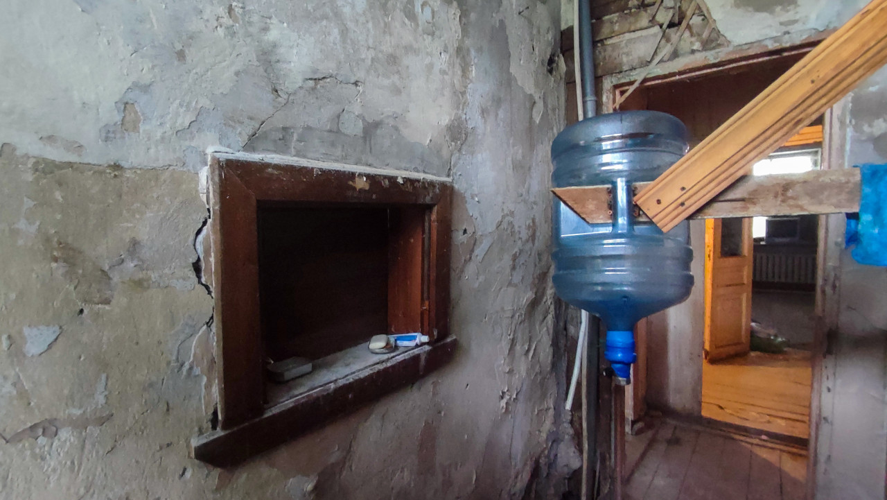 интерьер заброшенное здание старый дом ветхость аварийное состояние износ строительный мусор коридор старое помещение проём в стене внутреннее окно деревянная рама полка тюбик мыло бытовой быт самодельная конструкция деревянная перекладина бутыль для воды кулер кран синяя тряпка дверной проём комната радиатор отопление трубы штукатурка трещины осыпание пыль запустение ремонт обследование урбекс документальная съёмкаПохожие фотографии