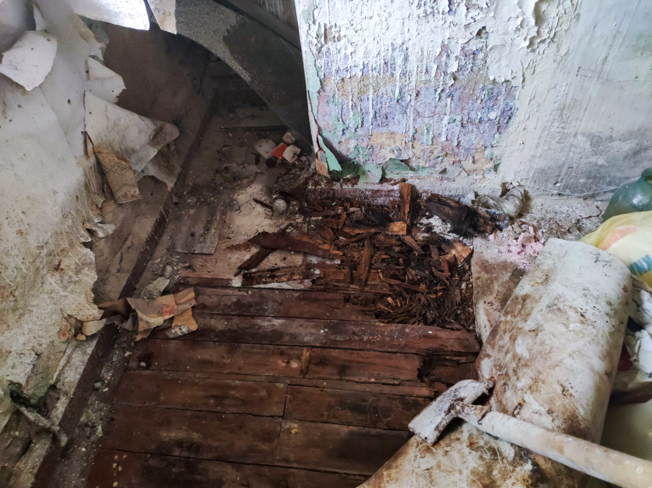 интерьер заброшенное здание старый дом ветхость аварийное состояние износ строительный мусор помещение ремонт демонтаж грязь пыль разруха разрушение деревянный пол половицы гниль гниение древесины провал пола щепа обломки сырость плесень облупившаяся краска старые стены заброшенное помещение аварийное жильё реконструкция обследование дефекты ветхое состояние уборка техника безопасностиПохожие фотографии