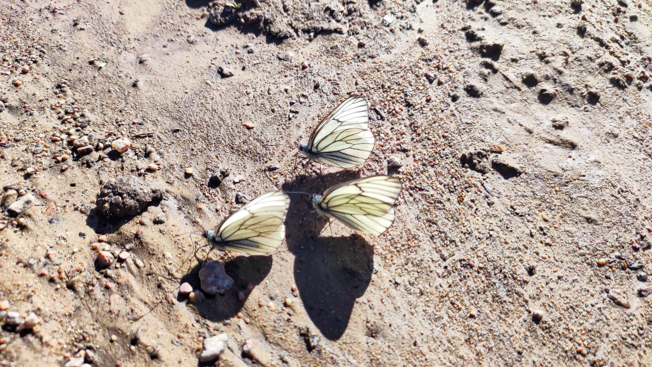 природа насекомые животный мир растения дикая природа биология энтомология биоразнообразие бабочки дневная съёмка лето солнечный свет макро крупный план белые крылья тёмные жилки тень песок влажный песок галька грунт камешки следы на земле группировка бабочек минералы лужица полевые наблюдения лесная дорога естественная средаПохожие фотографии
