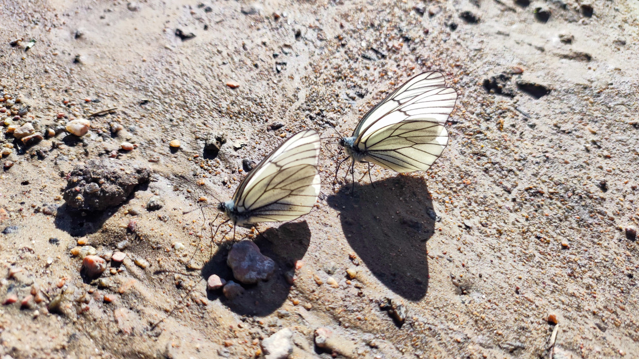 природа насекомые животный мир растения дикая природа биология энтомология биоразнообразие бабочки дневной свет лето солнечная погода белая бабочка две бабочки тёмные жилки полупрозрачные крылья тени песок влажный песок галька камни неровности почвы обочина тропинка макросъёмка крупный план природная фотосъёмка экологическое образование наблюдение за природой летний пейзажПохожие фотографии