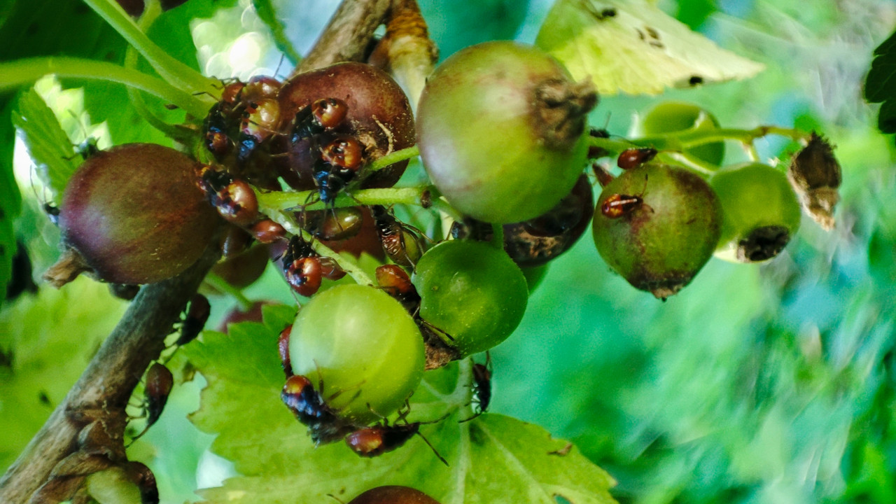природа насекомые животный мир растения дикая природа биология энтомология биоразнообразие сад крыжовник куст крыжовника ягоды незрелые ягоды гроздь ягод плодоножки листья ветка макросъемка крупный план клопы клопы щитники нимфы полужесткокрылые вредители сада повреждение плодов питание соками растений защита растений обработка сада мониторинг вредителей урожай лето июнь 2024 микромирПохожие фотографии
