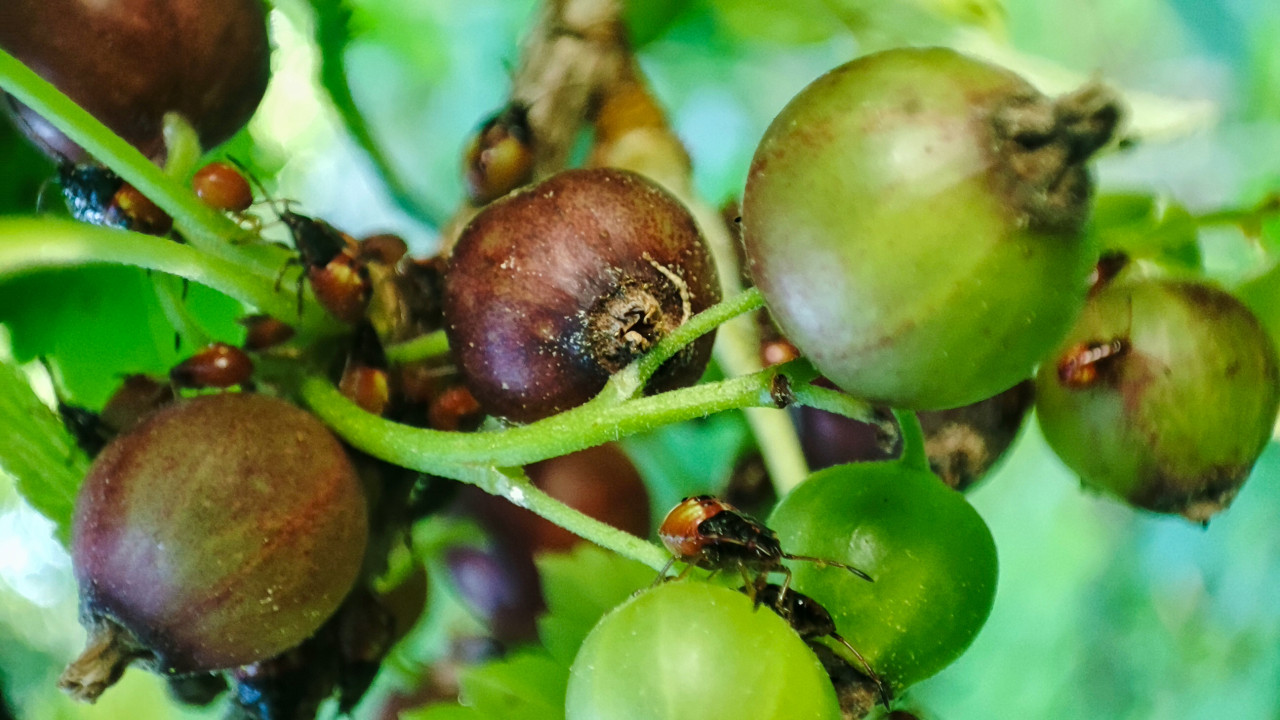 природа насекомые животный мир растения дикая природа биология энтомология биоразнообразие сад крыжовник ягода крыжовника незрелая ягода созревающие ягоды гроздь плодоножка чашелистик листва макросъемка крупный план насекомое клоп клоп щитник нимфа полужесткокрылые вредители сада прокалывающий вредитель питание соками растений повреждение ягод защита растений уход за кустами садоводство урожай лето июнь 2024Похожие фотографии