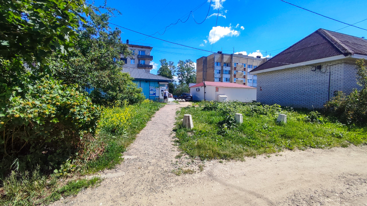 городской пейзаж городские улицы дороги дома улица городская среда город городской вид городская улица городская инфраструктура городской ландшафт урбанистика городская атмосфера уличное пространство двор тропинка грунтовая дорога зелень кусты высокая трава лето солнечный день синее небо облака воздушные провода линии связи жилой дом многоэтажка панельный дом кирпичное здание хозяйственная постройка дворовая территория бетонные тумбы проход микрорайон окраина города благоустройство инфраструктура повседневностьПохожие фотографии