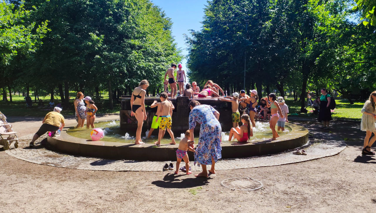 город парк зелёная зона деревья газон лето прогулка отдых люди городская среда благоустройство общественное пространство фонтан вода дети семья родители летний отдых жара купание водные игры общественное место досуг дневной свет солнечный день безопасность детей городская инфраструктура отдых с детьми пляжный мяч летняя одежда купальник пешеходная зона отпуск выходной РоссияПохожие фотографии