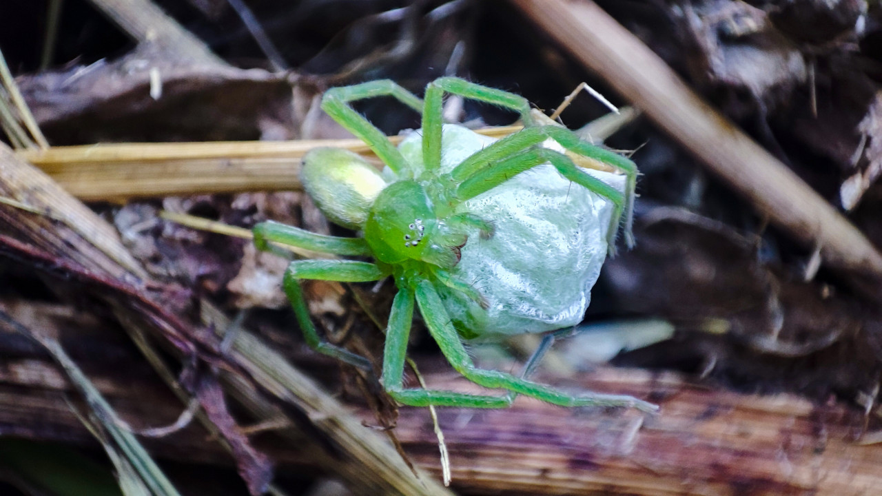 природа насекомые животный мир растения дикая природа биология энтомология биоразнообразие животные паук паукообразные членистоногие беспозвоночные микроммата микроммата зелёная зелёный паук кокон кокон с яйцами яйцевой мешок кладка яйца паука потомство размножение охрана кладки поведение животных макро крупный план микромир трава травинки лесная подстилка листовой опад зелёная окраска камуфляж лето дневной светПохожие фотографии