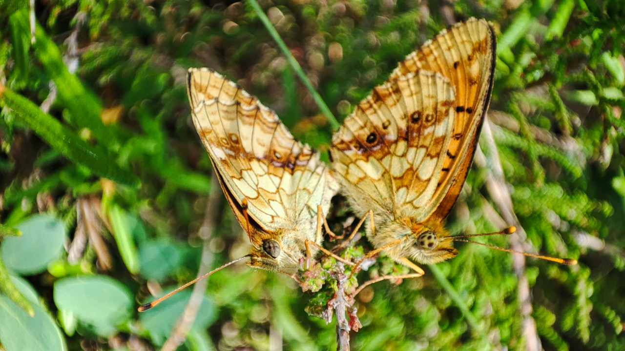 природа насекомые животный мир растения дикая природа биология энтомология биоразнообразие бабочка бабочки чешуекрылые макрофото крупный план две бабочки крылья рисунок крыльев оранжевые оттенки пятна на крыльях усики ножки насекомого опылители лето июнь 2024 луг травянистая растительность зелёный фон побег естественная среда дикая фауна наблюдениеПохожие фотографии